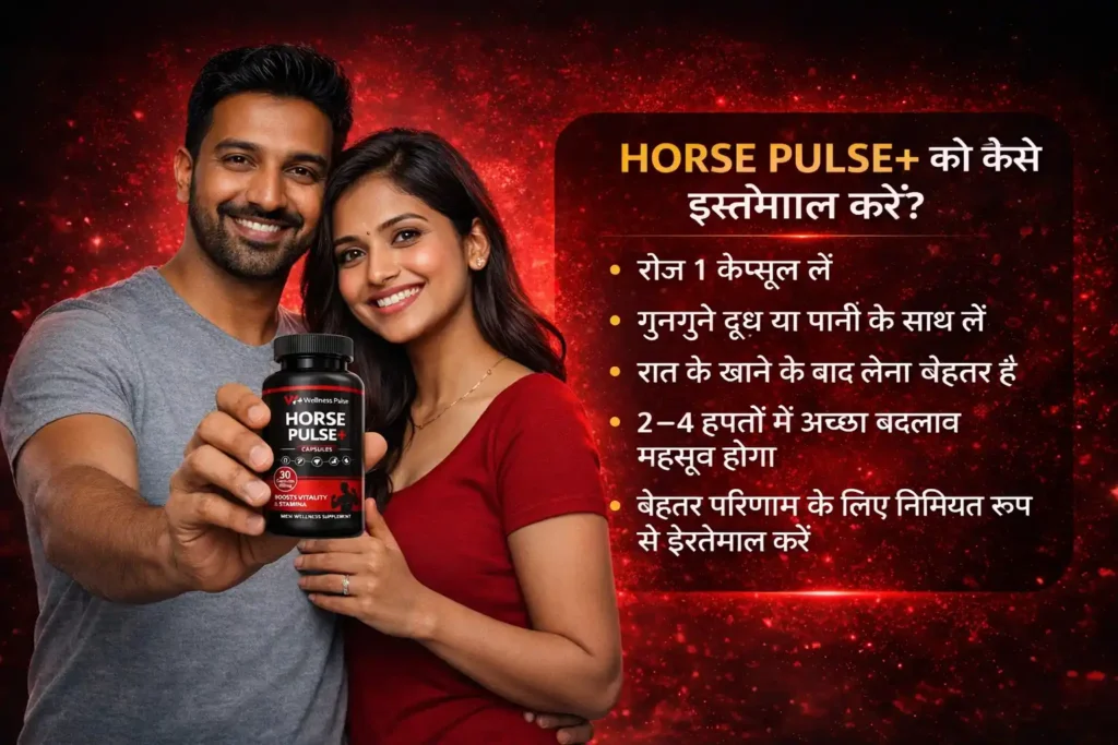 मैंने Horse Pulse+ Capsule का इस्तेमाल किया और कुछ ही दिनों में अच्छा बदलाव महसूस किया। मेरी स्टैमिना बढ़ी है और अब मुझे ज्यादा आत्मविश्वास महसूस होता है।